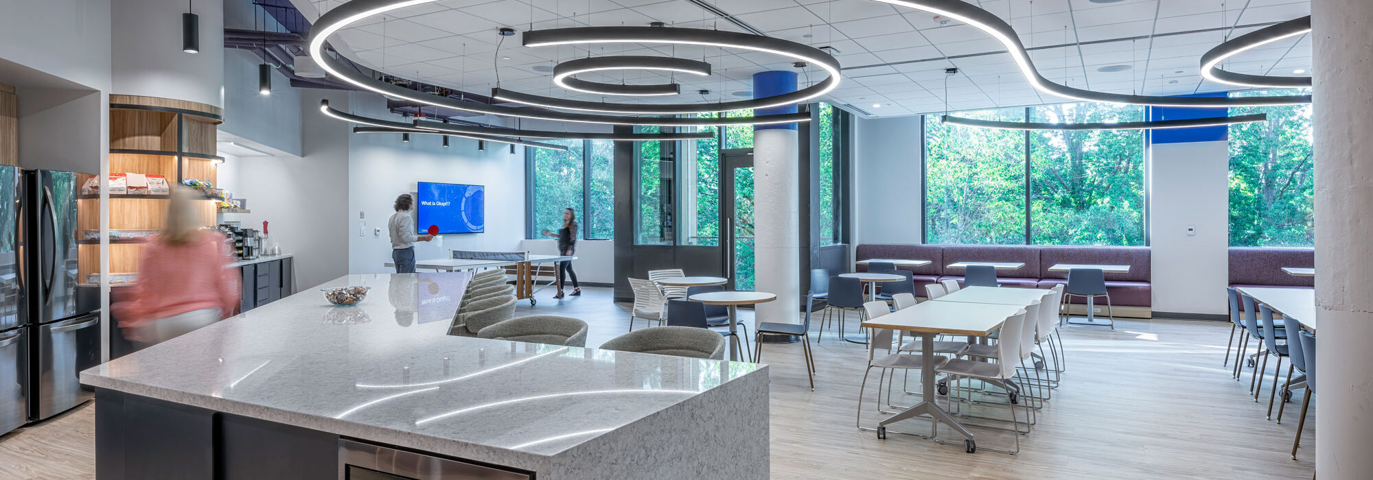 An acoustical luminaire that transforms spaces with architectural grade lighting, superior sound mitigation, and a sophisticated geometric form.